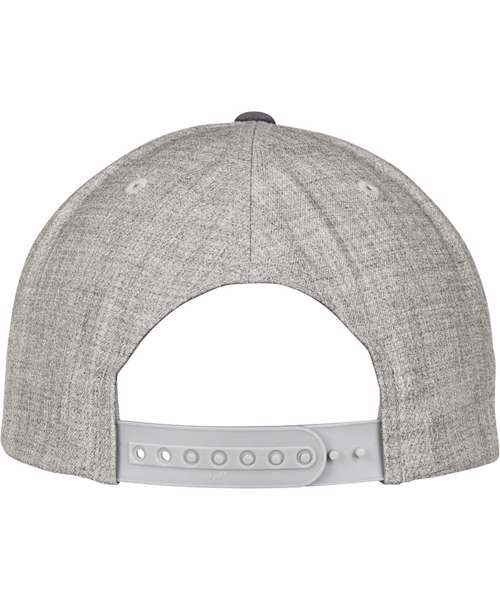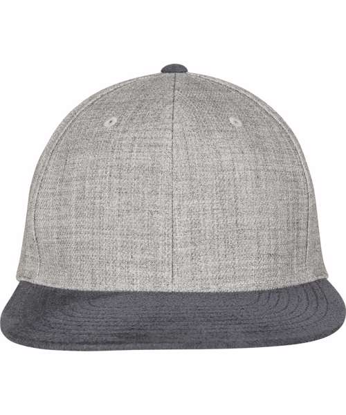 Melange velour snapback. Retro style. Mottled outer fabric. Soft-contrasted, flat visor. Integrated snapback closure.