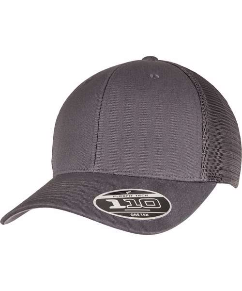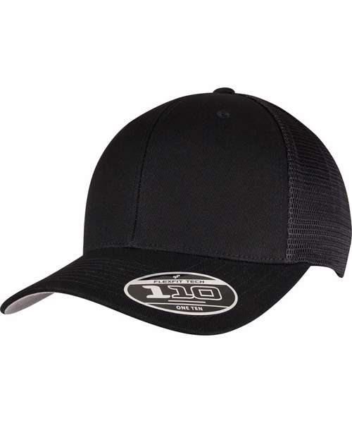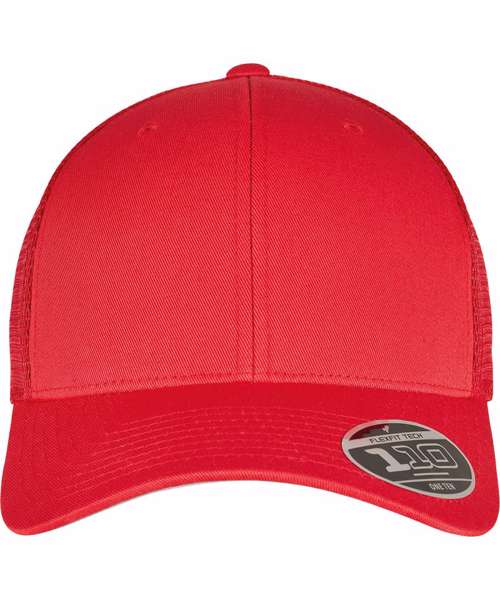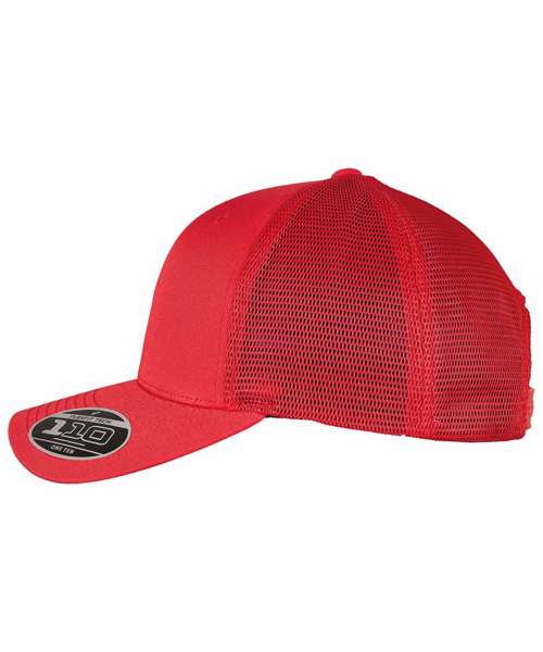 Plain-colored trucker cap with color-matching snapback closure, made from cotton and polyester, one size fits all, Flexfit 110 technology, 8-fold quilted, pre-bent visor.